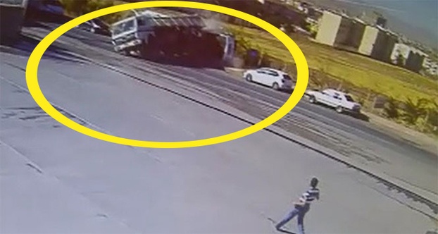 Kaza sırasında ismi öğrenilemeyen sürücü ise fark edip kamyonun peşinden koştu ancak araca yetişemedi. Kaza anları ise güvenlik kamerasına saniye saniye yansıdı.