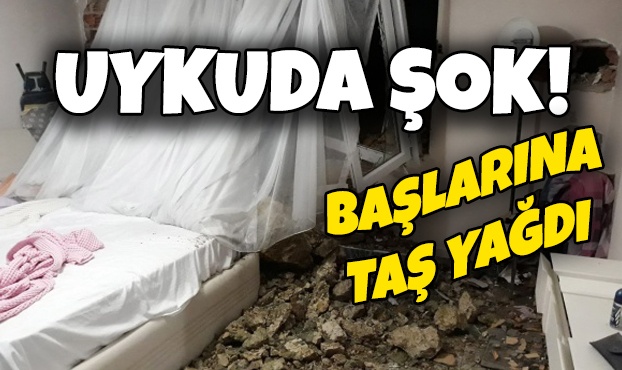 Kaya parçaları binanın 1 ve 2. Katlarına girerken, uyuyan vatandaşlar deprem etkisiyle uyandı.