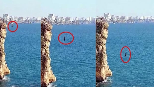 Turizm kenti Antalya'da macera arayan gençler, Konyaaltı Varyantı'nın hemen yanı başında denize dik uzanan falezlere çıktı. Yaklaşık 3 hafta önce falezlerdeki bir başka vatandaş tarafından cep telefonuyla yapılan kayıtta yaklaşık 40 metrelik falezlerin uç kısmına ulaşan gençler, tehlikeye aldırmadan kendilerini denize bıraktı.