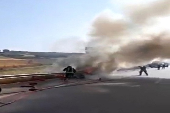 Çarpma şiddetiyle alev alan otomobil içindeki sürücü feci şekilde yanarak can verdiği kazanda otomobilin yanma görüntüleri bir vatandaş tarafından çekilen görüntüleri an be an kaydedildi.