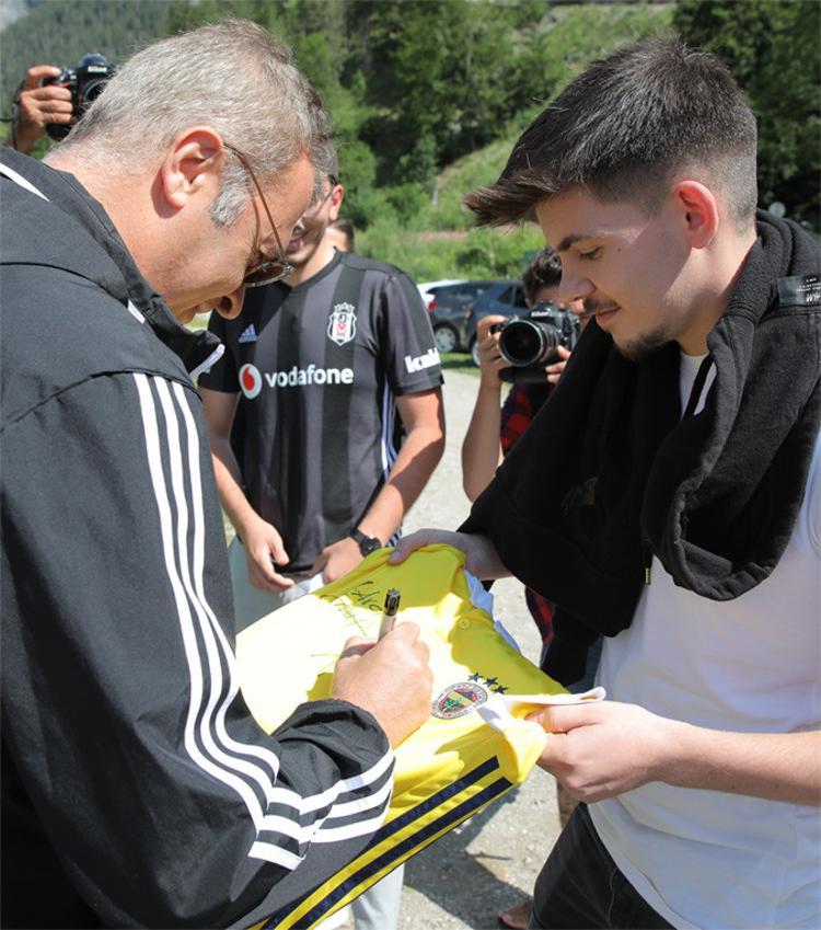 Avcı’nın yanına gelen bir Fenerbahçe taraftarı formasını imzalatmak istedi, tecrübeli teknik adam da onu kırmadı.