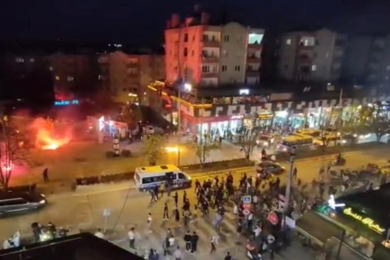Bursa'da Fenerbahçe-Galatasaray derbisi öncesi iki taraftar grubu birbirine girdi. Gençlerin yoğunlukta olduğu Görükle Mahallesi'nde karşı karşıya gelen taraftar grubu arasındaki sözlü sataşmada meşaleler havada uçuştu.