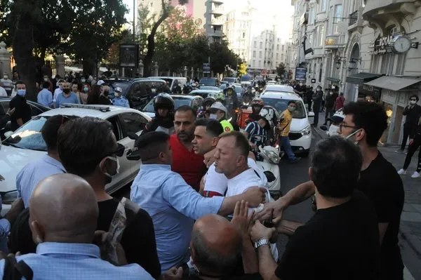 Cenaze aracı camiiden çıktığı sırada tabutun üzerinde Galatasaray bayrağını gören 4 şahıs Beşiktaş lehine sloganlar atmaya başladı.