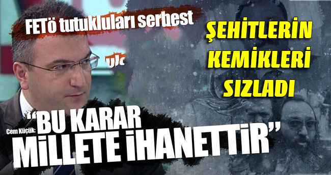 İstanbul 25. Ağır Ceza Mahkemesi tarafından serbest bırakılan bazı FETÖ tutukluları toplumda tepkiye yol açtı. Hanım Büşra Erdal, Gökçe Fırat gibi isimlerin de aralarında olduğu birçok kişi hakkında tahliye kararı verilmesini gazeteci Cem Küçük Sabah’a değerlendirdi. Küçük, ‘Bu Türkiye Cumhuriyeti ve millete ihanettir. Kararın derhal geri alınması gerekir” dedi.