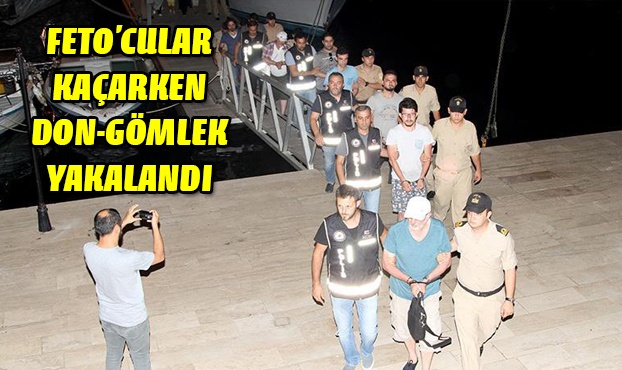 Altlarında şortlarla turist görünümü ile Yunanistan'a tüymeye çalışan 8 Fethullahçı teknede yakalandı..