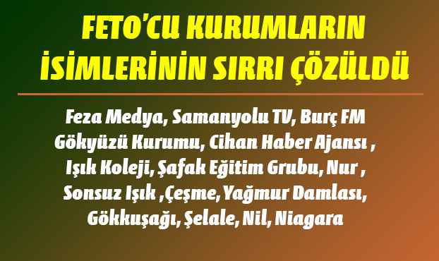 Fethullahçıların kurumlarının isimlerinin sırrı çözüldü
