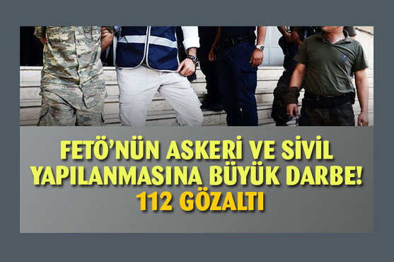 KAYNAK : İNTERNETHABERFETÖ'nün sivil ve askeri yapılanmasına yönelik düzenlenen peş peşe operasyonlar kapsamında 112 kişi hakkında gözaltı kararı verildi.