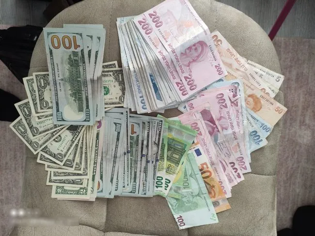 Adreslere eş zamanlı düzenlenen baskınlarda F serisi dolar ele geçirildi.