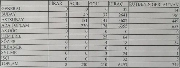 Soruşturma kapsamında 15 Temmuz 2016 hain darbe girişiminden bu güne kadar FETÖ/PDY ile irtibat ve iltisaklı subay, astsubay ve diğer personel olmak üzere Hava Kuvvetleri Komutanlığı'ndan ihraç edilen sayının tam 6 bin 492 kişi olduğu belirlendi. Sayının korkunçluğu kadar bir çarpıcı gerçek daha vardı. Bu subaylar FETÖ'cüler tarafından yetiştirilip mezun edilmiş, aktif olarak darbe girişimine katılmışlardı. Yine darbe girişiminden bugüne kadar FETÖ/PDY irtibatı nedeniyle ihraç edilen jet pilotu subay sayısının 927 olduğu ortaya çıktı.