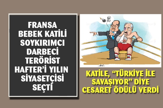 Yıllardır Türkiye'ye demokrasi dersi vermeye kalkan Fransa, Libya'da girdiği her şehirde ardında ceset tarlası bırakan katil darbeci Hafter'e yılın "siyasi cesaret ödülü" verdi