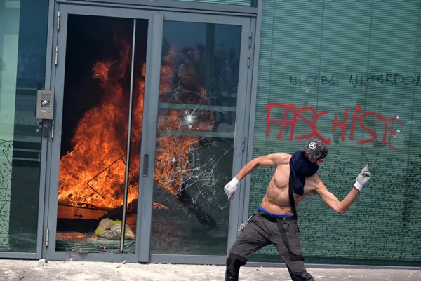 Araç, çöp bidonları ve farklı binaları ateşe veren eylemciler ve polis arasında arbede yaşanmıştı.