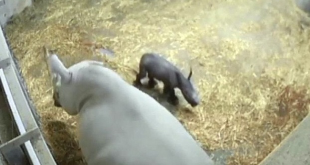 Fransa'da beyaz gergedanın doğum mutluluğu