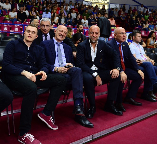 Öte yandan mücadeleyi Galatasaray Başkanı Mustafa Cengiz, FIBA Avrupa Başkanı Turgay Demirel, FIBA Avrupa İkinci Başkanı Cyriel Coomans, yöneticiler Okan Böke, Prof. Dr. Nejat Güney, Ömer Cansever, Mahmut Recevik ve Erol Özmandıracı, Sportif AŞ Yönetim Kurulu Üyesi Yusuf Günay ile mücadeleyi Palasport Taliercio da takip etti.
