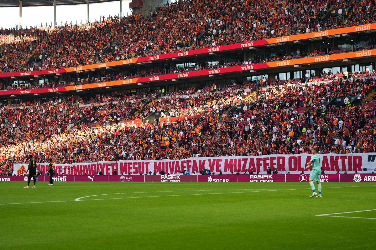 Ali Sami Yen Spor Kompleksi tribünlerini dolduran sarı-kırmızılı taraftarlar, tezahüratlarıyla futbolcuları maça hazırladı.