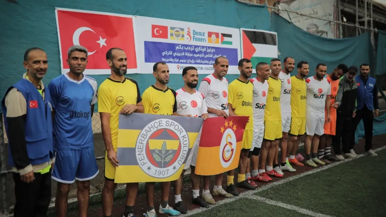 Türk insani yardım kuruluşu Deniz Feneri sponsorluğunda düzenlenen maçta genç Filistinli oyuncular, Türkiye’nin iki ezeli rakibinin formalarıyla sahaya çıktı.