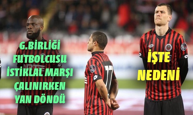 Gençlerbirliği’nin Brezilyalı futbolcusu Jailton, Galatasaray maçı öncesinde İstiklal Marşı okunurken yan döndü.