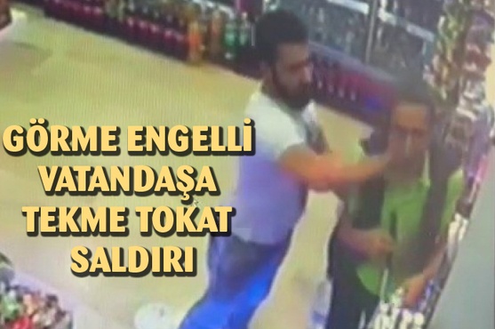 Görme engelli vatandaşa bakkalda tekme tokatlı saldırı