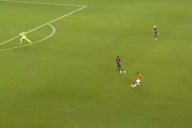 Karşılaşmada baskılı oynayan Göztepe, 43. dakikada 1-0 öne geçti. Savunmadan Allan'ın uzun pasında rakip yarı sahada topla buluşan Juan, topu soluna çektikten sonra kalecinin de biraz önde olduğunu gördü. Juan'ın uzak mesafeden yaptığı akıl dolu harika bir aşırtma vuruşta meşin yuvarlak ağlarla buluştu. Bu gol, kısa süre içerisinde sosyal medyada gündem oldu ve futbolseverler tarafından oldukça beğenildi.