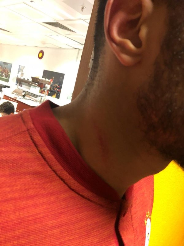 Galatasaray'ın paylaşımında, Garry Rodrigues'in yaralanmış bacağı ve Belhanda'nın boynunda oluşan kızarıklık fotoğraflarla gösterildi.