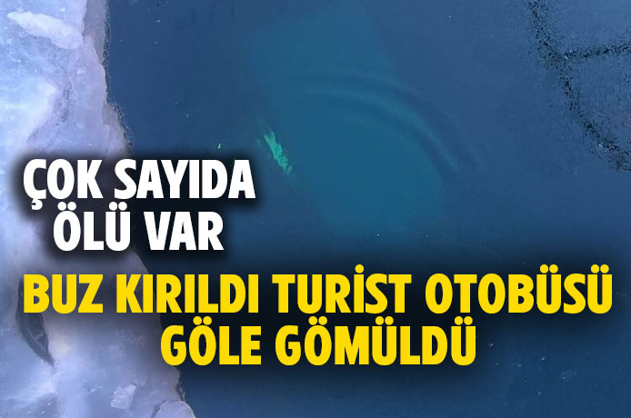 Baykal Gölü'nde Çinli turistleri taşıyan bir otobüs göle b...