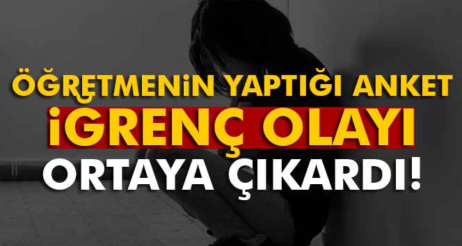 Denizli'de bir ortaokulda görevli rehber öğretmen tarafından sınıfta yapılan ankette 13 yaşındaki kız çocuğu, arkadaşının babası tarafından cinsel istismara uğradığını yazdı. Şikayet üzerine gözaltına alınan zanlı, çıkarıldığı mahkeme tarafından tutuklandı.