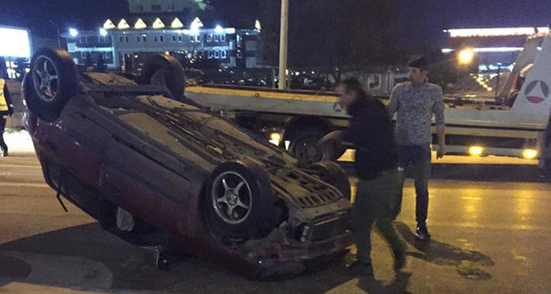 Hafif ticari araçla çarpışan otomobil takla attı