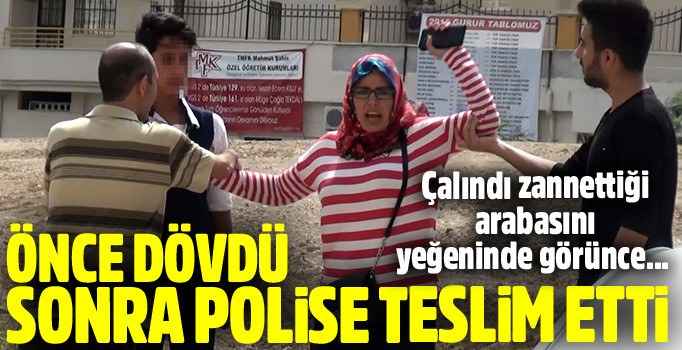 Adana'da çalındı sandığı otomobilini yeğeni 15 yaşındaki H.H.A'nın alarak gezmeye çıktığını öğrenen hala Huriye Dönmez, yeğenini önce dövdü, sonra polise teslim etti.