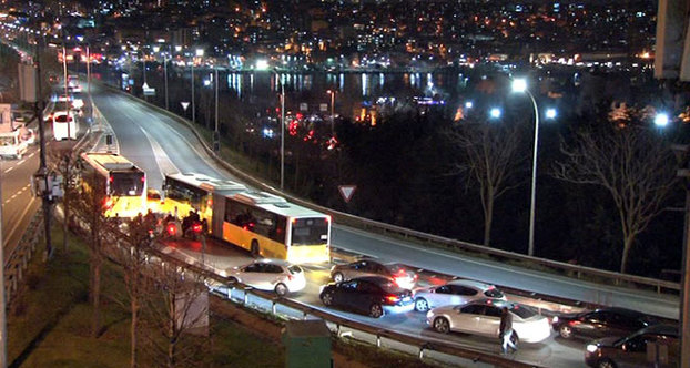 İstanbul Haliç'te ticari taksi sürücüsü ile halk otobüsü sürücüsü arasında yaşanan yol verme inadı kazaya neden oldu. Kaza nedeniyle yolda metrelerce araç kuyruğu oluştu.