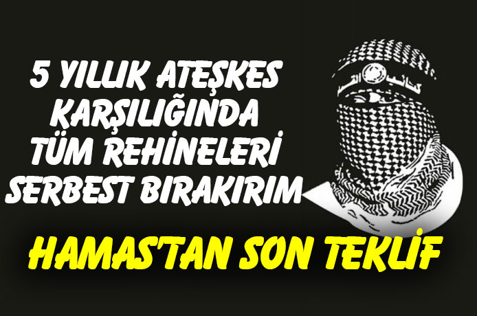 HAMAS rehinelerin tamamına karşılık 5 yıllık ateşkes teklif etti