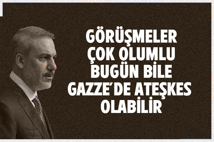 Mısır'da İsrail ve Hamas heyetlerinin dolaylı olarak yürüttüğü ateşkes görüşmeleri ile ilgili konuşan Bakan Fidan, uzlaşmaya varılırsa bugün ateşkes ilan edileceğini söyledi. Fidan şu ifadeleri kullandı: Başta rehinelerin bırakılması olmak üzere adımlar atılması gerekir. Gazze planı geniş bir plan ve çok fazla konuyu içeriyor. Birinci öncelikli madde, ateşkesin sağlanması ve rehinelerin bırakılması.