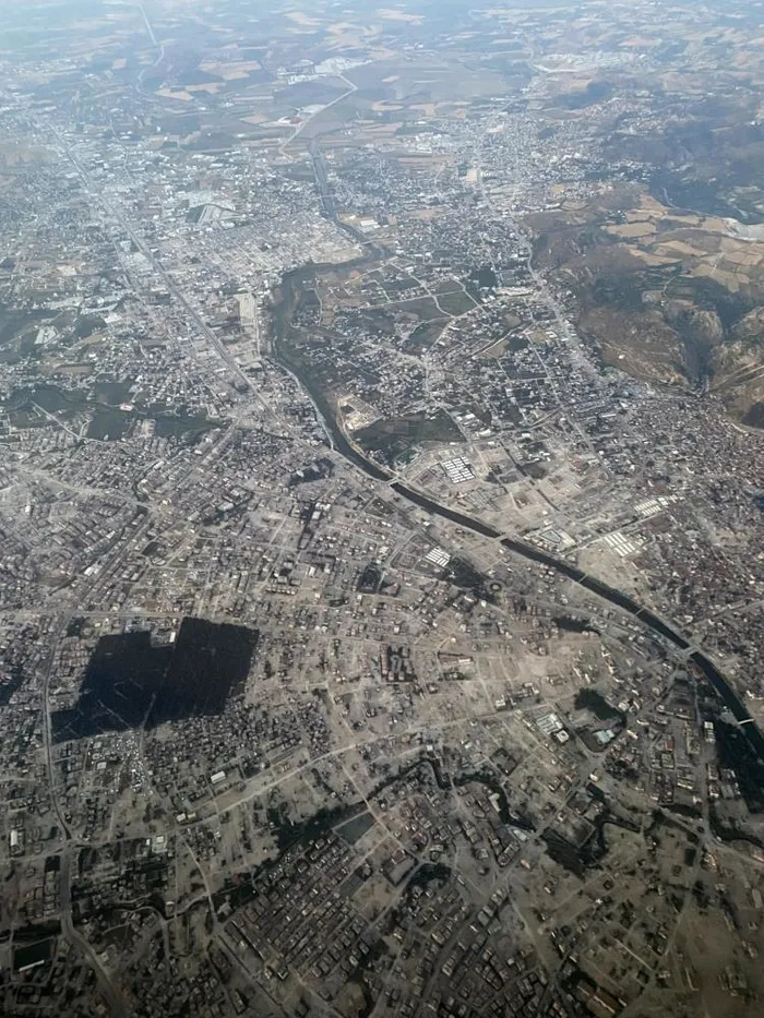 Kaldırılan enkazların yerindeyse boş araziler oluştu. Kent merkezinin tarlaya döndüğü Antakya, Hatay'dan İstanbul'a uçakla seyahat eden Mehmet Yeşilel tarafından uçaktan görüntülendi. Görüntüler, depremin Antakya'daki etkisini gözler önüne serdi.