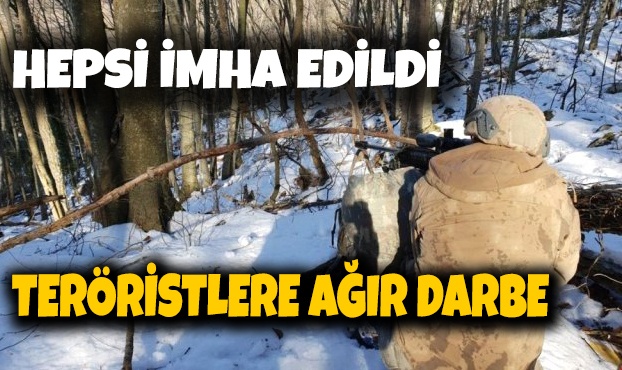 Sığınakların içinde banyo, mutfak ve odalar bulunduğu belirtilen açıklamada, “Sığınaklarda teröristlere ait jeneratör, roketatar mühimmatları, patlayıcı yapımında kullanılan malzemeler, amonyum nitrat, çok sayıda mutfak tüpü, elektrik malzemeleri, aküler, bol miktarda yaşamsal malzeme ve ilk yardım malzemesi yanında sığınak-barınak yapımında kullanılan malzeme ele geçirilerek imha edilmiştir” denildi.