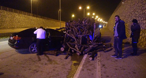 Kazayla ilgili inceleme başlatılırken, kazada savrulan odunlar bir başka pikaba yüklenerek tek şeride düşen yol yeniden çift şeride geçti.