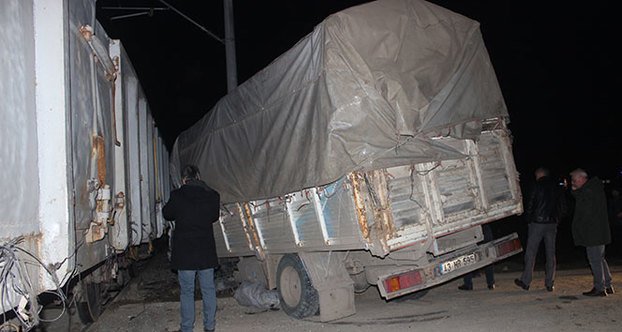 Hemzemin geçitte tren kamyonete çarptı: 2 yaralı
