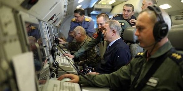 Milli Savunma Bakanı Hulusi Akar, Genelkurmay Başkanı Orgeneral Yaşar Güler ve kuvvet komutanlarıyla Mavi Vatan Tatbikatı'nı, Hava Kuvvetleri Komutanlığının Havadan Erken İhbar ve Kontrol (HİK) uçağından takip etti.