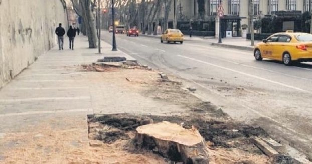 İBB, tarihi çınar ağaçlarını katletti!