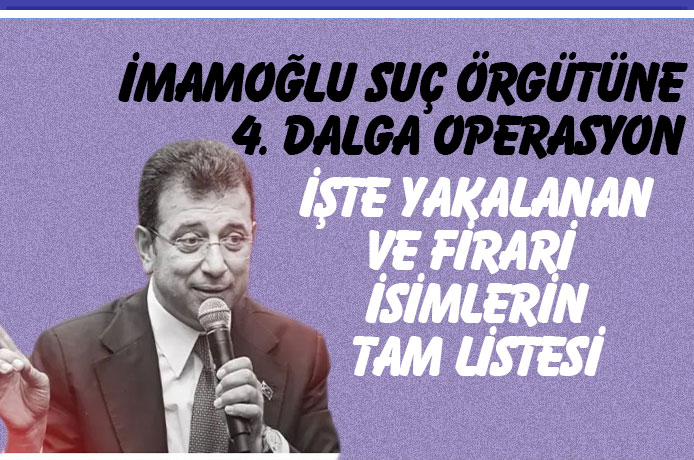İstanbul Cumhuriyet Başsavcılığınca, İBB Başkanı Ekrem İmamoğlu ve şüpheliler hakkında "suç örgütü yöneticisi olmak", "suç örgütüne üye olmak", "irtikap", "rüşvet", "nitelikli dolandırıcılık", "kişisel verileri hukuka aykırı ele geçirmek" ve "ihaleye fesat karıştırmak" suçlarından başlatılan soruşturma kapsamında bu sabah saatlerinde 4. dalga operasyon gerçekleştirildi.