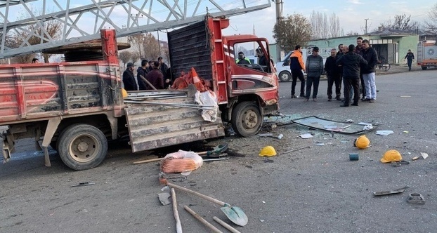 Iğdır’da kamyonet ile iş makinasının çarpışması sonucu meydana gelen kazada kamyonetin kasasında bulunan bir kişi hayatını kaybetti.