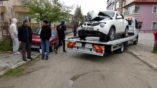 İki araca çarpan kadın sürücü kendini cipine kilitledi