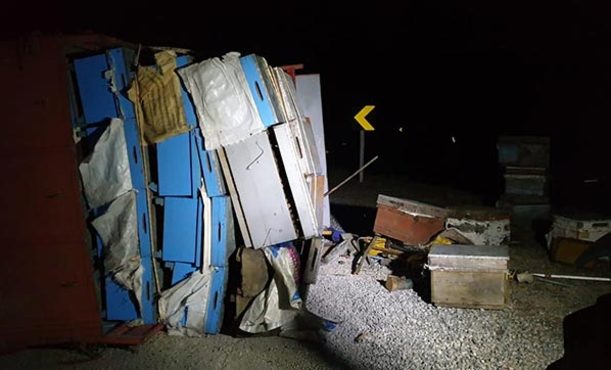 İlçede panik! Arı kovanı yüklü kamyonet devrildi