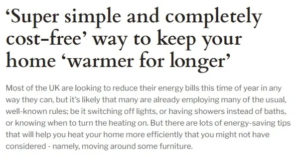 Ülke genelinde yüz binlerce hanenin faturalarını ödeyemediğini belirten gazete, doğal gaz faturalarının az gelmesi için çok vakit geçirilen odalarda eşyaların duvarlardan ve kaloriferden uzaklaştırılarak odanın ortaya toplanmasının iyi bir seçenek olduğunu vurguladı.
