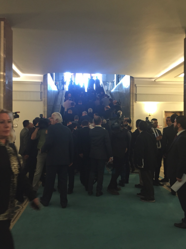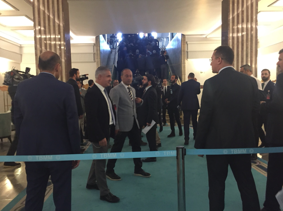Bugün partililerin grup toplantıları vardı. Bu yüzden parti gruplarının ayrı koridorlardan salona girmesi için kapılar değiştirildi.