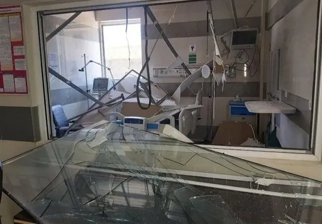 Görüntülerde hastanenin tahrip olduğu ve sedyelerde kan izleri olduğu görüldü.