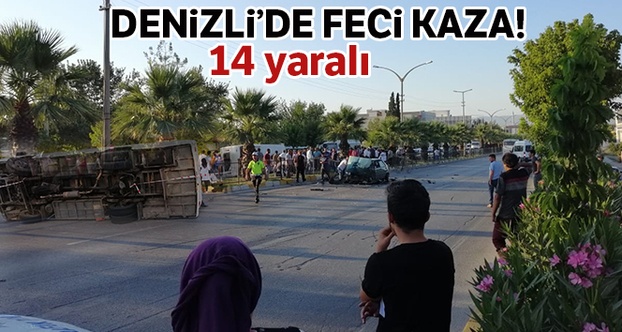 Denizli’nin Pamukkale ilçesinde tekstil işçilerini taşıyan servis aracı ile otomobilin çarpıştığı kazada 3'ü ağır 14 kişi yaralandı.