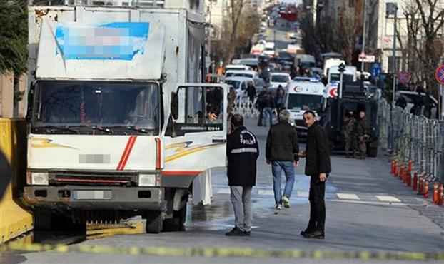 İstanbul Emniyet Müdürlüğü önünde freni patlayan bir kamyon, bariyerlere çarptı. Polis havaya uyarı ateşi açtı.