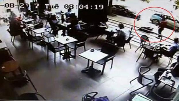 Görüntülerde kadının bir arkadaşıyla arkasına bakarak hızla ilerlediği görülüyor. Bu sırada hızla gelen erkek saldırganın kadına önce yumruk attığı görülüyor. Kadın aldığı darbenin etkisiyle yere düşerken, saldırganın yerdeki kadını tekmelediği görülüyor. Bu sırada kadının arkadaşı ve kafede oturanların koşarak şahsa engel olmaya çalıştıkları görüntülere yansıyor.