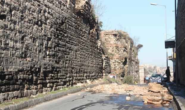 Fatih Sulukule Caddesi'nde tarihi surların bir kısmı yola çöktü. Olay yerine itfaiye, polis ve sağlık ekipleri sevk edildi. Cadde iki taraftan da kapatıldı.