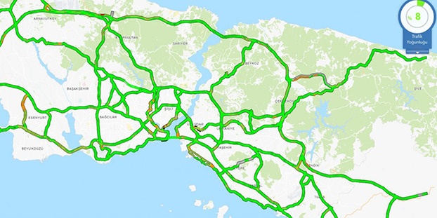 Bayramın ve hafta sonu olması nedeniyle trafik yoğunluğu an itibarıyla, yüzde 8 olarak ölçülüyor.