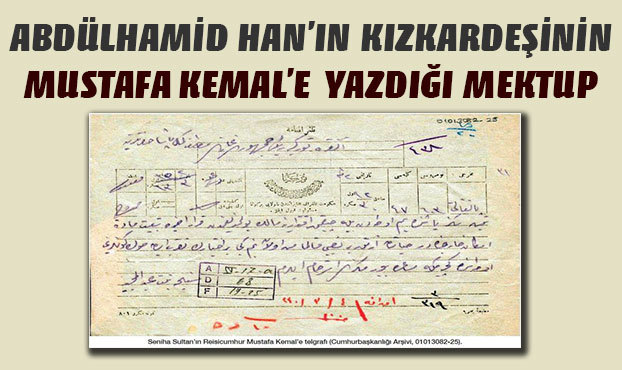 İşte Abdülhamid’in kızkardeşinin Mustafa Kemal’e yazdığı mektup