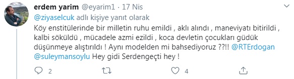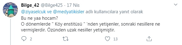 Milli Eğitim Bakanı Ziya Selçuk, 17 Nisan'da kuruluş yıl dönümü dolayısıyla Köy Enstitüleri ile ilgili mesaj yayımladı. Bakan Selçuk'un mesajının ardından CHP tarafından milletin başına bela edilen ve Laikçi düzenin propaganda aracı olmaktan öteye gidemeyen Köy Enstitüleri'nde yaşanan skandallar gündeme geldi.